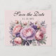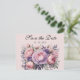 Anuncie su día especial con nuestra magnífica tarjeta postal "Save the Date", que presenta impresionantes arreglos florales. Perfecto para bodas, esta postal de personalizable le permite añadir sus nombres y fecha de boda, asegurando que sus invitados marquen sus calendarios. El suave fondo rosa y la elegante tipografía crean un ambiente romántico, lo que lo convierte en una elección ideal para cualquier pareja. Ya sea que esté planeando una boda en la playa o una ceremonia en el jardín, esta postal marcará el tono para su celebración. ¡Pide ahora que tu planificación de bodas sea más fácil y elegante!