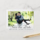 Elegante foto personalizado "Save the Date" postal con revestimiento de grano de madera blanca.