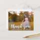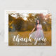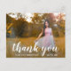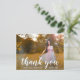 Moderna graduación gracias postal que incluye "gracias" en una elegante tipografía escrita a mano blanca junto con "por celebrar conmigo" en una fuente sans serif, sobre tu foto favorita. El reverso tiene su dirección de retorno junto con su mensaje personal en oro sobre un fondo blanco. Puede eliminar la plantilla si desea escribir a mano su mensaje. Esta simple y bonito postal es perfecta para un chica graduado.