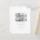 Este guión de bonito blanco y negro salva la fecha de anuncio postal con hojas de laurel y corazones. Agregue los detalles de su invitación especial en un texto clásico.