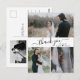 Moderno, Elegante, Minimalista Collage de fotos Boda Leído A Mano Gracias Postard. Elegante boda gracias a la plantilla de postal que incluye tres (3) fotos en la parte delantera y una (1) foto en la parte posterior. Con el texto "gracias" en una letra de escritura tipográfica con letras a mano rápida en fondo negro sobre blanco. Personalice el nombre personalizado y el mensaje de agradecimiento. Si prefiere escribir a mano la nota, simplemente elimine el texto de ejemplo para hacer más espacio. Si necesita ayuda o un elemento que coincida, por favor, póngase en contacto conmigo.