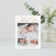 Tarjeta postal Elegante guión de oro 3 Foto Baby Gracias incluye tres fotos del nuevo bebé, junto con elegante caligrafía de guión, y todos los datos del bebé. La parte trasera tiene mucho espacio para tu nota de agradecimiento.