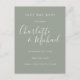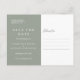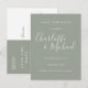Con nombres de estilo de firma, esta elegante tarjeta de guardar la fecha en plata salvia se puede personalizar con la información de su día especial de boda en letra blanca chic. Puede personalizar el fondo según el tema de color de su boda. Diseñado por Thisisnotme©