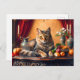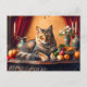 un gato elegante posa en medio de una exuberante disposición de frutas y flores en esta intemporal pintura de la vida.