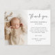 Nuestra hermosa tarjeta de agradecimiento es una forma sofisticada de compartir tu gratitud. Esta tarjeta muestra tu foto de bebé personalizada a la izquierda sobre un fondo blanco prístino, creando un aspecto simple pero llamativo.