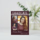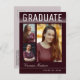 Postales de invitación de graduación elegantes, modernas y de moda, con elementos de diseño de texto moderno con escritura a mano. Tres fotos de graduados resaltan la parte delantera de la tarjeta con "Graduado" acentuado en un elegante gradiente blanco. La parte posterior de la tarjeta ofrece espacios de texto personalizados para obtener información sobre su graduación y viaje futuro. Escribir en blanco sobre rojo burdeos o fácilmente personalizar el fondo para que coincida con el color primario de su escuela o cualquier color de su elección. Perfecto para el bachillerato, la universidad y la universidad.