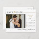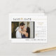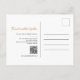¡Haz un anillo alrededor de la fecha para decirle a tus invitados que guarden la fecha de tus próximas nupcias! (Instrucciones a continuación — lean) Esta tarjeta postal guarda la fecha de contratación invitación de invitación con caligrafía elegante y letra simple de tipografía sans serif con una foto y código QR sobre un fondo blanco con falsas líneas de oro, anillo dorado para el corazón y texto en blanco y negro para un limpio aspecto minimalista y moderno, que es una hermosa manera de decirle a sus invitados que informen sobre su próximo boda. Anuncie a su familia y amigos que se está casando con esta invitación y añada un toque personal con hermosas fotos de usted y de su futura mitad mejor. La sencillez de este diseño añade un toque de elegancia a su boda, ahorrando las tarjetas de invitación de fecha. Funciona bien con muchos temas bodas y sin duda una gran adición a su boda. Simplemente personalizar los nombres y frases en unos pocos pasos fáciles y personaliza la postal de invitación con tu foto de la pareja feliz y reemplaza el código QR con el tuyo. —INSTRUCCIONES CON LA COLOCACIÓN DE LA FECHA DE ANILLO— Para cambiar la posición del anillo, haga clic en el botón azul 'editar con herramienta de diseño' en la sección personalización. Nota: La elegante caligrafía de las frases "Guardar la fecha" y "Invitación formal a seguir", así como las líneas y otras ilustraciones gráficas y elementos, no pueden editarse, eliminarse ni moverse. Están arreglados. Si necesita cambiar el color, puede personalizar la postal de invitación. Puede personalizar y personalizar la tarjeta postal de invitación para que se ajuste a sus necesidades de eventos de boda y simplemente haga clic en el personalizar de la tarjeta de invitación.