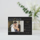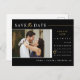 ¡Haz un anillo alrededor de la fecha para decirle a tus invitados que guarden la fecha de tus próximas nupcias! (Instrucciones a continuación — lean) Esta tarjeta postal guarda la invitación de invitación a compromiso de fecha con una caligrafía elegante y un tipo de letra simple de tipografía sans serif con una foto y código QR sobre un fondo negro con falsas líneas de oro, anillo de corazón dorado y texto en blanco y negro para una apariencia minimalista y moderna, que es una hermosa manera de decirle a sus invitados que informen sobre su próximo boda. Anuncie a su familia y amigos que se está casando con esta invitación y añada un toque personal con hermosas fotos de usted y de su futura mitad mejor. La sencillez de este diseño añade un toque de elegancia a su boda, ahorrando las tarjetas de invitación de fecha. Funciona bien con muchos temas bodas y sin duda una gran adición a su boda. Simplemente personalizar los nombres y frases en unos pocos pasos fáciles y personaliza la postal de invitación con tu foto de la pareja feliz y reemplaza el código QR con el tuyo. —INSTRUCCIONES CON LA COLOCACIÓN DE LA FECHA DE ANILLO— Para cambiar la posición del anillo, haga clic en el botón azul 'editar con herramienta de diseño' en la sección personalización. Nota: La elegante caligrafía de las frases "Guardar la fecha" y "Invitación formal a seguir", así como las líneas y otras ilustraciones gráficas y elementos, no pueden editarse, eliminarse ni moverse. Están arreglados. Si necesita cambiar el color, puede personalizar la postal de invitación. Puede personalizar y personalizar la tarjeta postal de invitación para que se ajuste a sus necesidades de eventos de boda y simplemente haga clic en el personalizar de la tarjeta de invitación.
