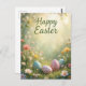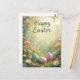 Postal Elegante Pastel Feliz Pascua con flores y huevos