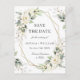 Elegante Boda De Eucalipto De Rosas Blancas Pastel Guarda La Postales De Fecha.