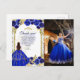 Postal Elegante presupuesto Royal Blue Floral Foto Quince