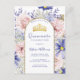 Esta elegante invitación de postal de la celebración floral de la quinceañera acuarela presenta flores rosadas y violetas acentuadas con un falso borde purpurina de oro y tiara. personalice sus detalles de celebración en la tipografía moderna de escritura. La parte posterior de la tarjeta postal tiene un mensaje que usted puede personalizar. Diseñado por Susan Coffey.