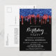 Invite a amigos y familiares a su fiesta de cumpleaños con estos elegantes purpurinas patrióticos negros, rojos y azules gotea invitaciones para fiestas de cumpleaños y suministros de fiesta. Estas invitaciones de cumpleaños rojas, azules y negras también son perfectas para fiestas de retiro y graduación y celebraciones, solamente cambiar el evento en la pestaña de personalización. Esta colección de cumpleaños temática de la Bandera Americana de Estados Unidos será favorita entre todos los militares, veteranos, policías y fuerzas armadas, así como eventos empresariales y corporativos. Visite nuestra colección patriótica de cumpleaños para invitaciones de color blanco y azul, favores de cumpleaños, suministros para fiestas. DERECHOS RESERVADOS © 2020 Judy Burrows, Black Dog Art - Todos los derechos reservados. Elegante Purpurina azul rojo gotea postal patriótica de cumpleaños