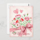 Presentamos nuestra hermosa tarjeta postal personalizable, perfecta para enviar mensajes sinceros a tus seres queridos. Esta encantadora tarjeta postal presenta un delicioso ramo de flores rosas y blancas, elegantemente atadas con una suave cinta rosa. Sobre el ramo, dos adorables corazones rosas añaden un toque de romanticismo y calidez. La parte delantera de la tarjeta postal muestra el texto "Con amor" en una fuente elegante y cursiva, lo que la hace ideal para expresar tu afecto en cualquier ocasión especial.
