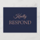 Postal Elegante Rosa de la Marina de Oro Boda Azul RSVP