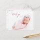 Elegante Rosa de caligrafía de Moda moderna Guión dorado bebé recién nacido Foto Gracias Postcard. Presenta un texto de bonito "gracias" en un tipo de letra de caligrafía escrita a mano swash tail en el Relieve metalizado de oro rosa rosa de FAUX. Al fondo, un mensaje personal prehecho en blanco y negro. Fácil de personalizar con la foto y los detalles de su bebé.