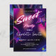Postal Elegante rosa neón retro negro Cumpleaños Sweet 16