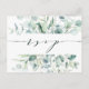 Esta tarjeta postal de RSVP de boda cuenta con eucalipto pintado a la acuarela, verde botánico y hojas azul claro con caligrafía elegante.