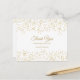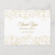 Una tarjeta de agradecimiento chic con elegante confeti de polvo de oro y texto chic. El reverso incluye su mensaje de agradecimiento, nombres y detalles de la dirección de devolución. Perfecto para bodas, fiestas de compromiso, celebraciones de aniversario, graduaciones, y otros eventos especiales durante todo el año! Diseñado por Thisisnotme©