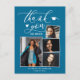 Elegante Guión Turquesa 4 Graduación De Collage de fotos Gracias Postcard. "Gracias" a tu familia y amigos con esta hermosa tarjeta de agradecimiento. Todos los textos están preorganizados para que puedas personalizarlos fácil y rápidamente con tus propias palabras.