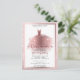 Esta elegante invitación de postales para Quinceañera presenta un hermoso vestido de rosa oro con acentos de diamante y texto personalizable en un fondo suave de mármol rosa. Perfecto para invitar a los invitados a su celebración especial de cumpleaños número 15.