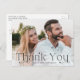 Elegante boda gracias a las postales con tu foto boda horizontal de sangre completa con "Gracias" en letras negras. Personalice esta foto moderna gracias a las postales con su nombre por un toque atemporal y elegante. En la parte posterior de la tarjeta postal de agradecimiento del boda de fotos se incluye espacio para su dirección de retorno y un mensaje personal, lo que facilita compartir su gratitud con los invitados. Perfecto para mostrar tu foto boda favorita mientras expresas tu aprecio.