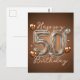 Medio siglo de vida merece una celebración tan vibrante como tus recuerdos, y esta tarjeta postal de cumpleaños número 50 es la forma perfecta de marcar el hito. El diseño irradia elegancia y festividad, con un '50' atrevido y brillante adornado con rayas metálicas doradas que se sienten como un foco personal en una vida bien vivida. Alrededor de este centro de atención, globos festivos en una paleta chic de oro y plata flotan con alegría, creando un telón de fondo de emoción y sofisticación.
