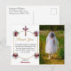 Den las gracias a su familia y amigos por asistir a la sagrada comunión de su hijo con estos Chicas elegantes de la flor rosa roja primera comunión. Este diseño presenta un sencillo fondo blanco en la parte delantera de la tarjeta y puede personalizar con una foto de su hijo. Una bonita cruz de madera con un ramo de flores rojas y rosas se completa con un marco dorado adornado con ramos de rosas rojas y rosas en cada esquina. Pon un mensaje de agradecimiento y firma a tu familia o a tu hijo. Hay un lugar donde colocar tu dirección de retorno en la parte posterior para tu comodidad.
