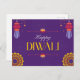 Postal Elegantes farolillos morados y dorados Feliz Diwal