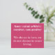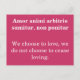 Una postal rosa brillante con una frase latina y la traducción al inglés, "nosotros elegimos amar, no dejamos de amar" del escritor y actor romano Publilius Syrus. Básicamente significa que aunque podamos elegir amar a alguien y estar en una relación con ellos, no podemos evitar caer por amor.