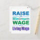 Elevar el Salario Mínimo a un mensaje activista del Salario Vivo en una colorida postal. Las imágenes tienen derechos de autor © Sandy Long, todos los derechos reservados. Este diseño está en muchos otros artículos divertidos en mi tienda de activismo de arte. Envíe un mensaje a sus senadores y a su representante y díganles que merecemos un salario digno. La productividad sigue subiendo, pero los ricos mantienen todas las ganancias. Deberíamos conseguir una mayor participación.