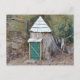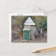 Esta postal presenta una casa de elfo que fue encontrada en el bosque en la granja Winterberry Christmas Tree en Killingworth, Connecticut.
