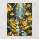 Un elfo amarillo y verde a la moda, que camina por un camino de piedra, en un encantador mundo de cristales amarillos. Este camino está bordeado por hermosas setas de fantasía hechas de brillantes cristales amarillos. ¿A dónde va este personaje elfo con su mochila? Tal vez se dirija a trabajar en una cueva de cristal. Esta imagen fue creada con la ayuda de herramientas de IA.