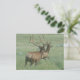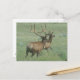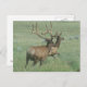 Elk de toro en la postal de terciopelo. Hermosos toros de alce en los abrigos de verano y los ángulos de terciopelo, la distancia entre los puntos del toro más grande le da al único ángel una apariencia casi caribú.
