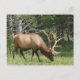 Bonito alce de toro comiendo un bocadillo junto a la carretera en el Parque Nacional Yellowstone.
