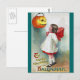 Una encantadora tarjeta vintage de Halloween con un chica de jung mirando a una Jack O'Lantern, pintada por la artista estadounidense ilustradora/comercial Ellen Hattie Clapsaddle.