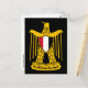 Escudo de Egipto. El escudo de armas árabe:・de Egypt・(El arabe egipcio) es una pieza de oro de la ص egipcia, mirando hacia la del espectador. El "Águila de Saladin" sostiene un pergamino en el que aparece el nombre del estado en la escritura árabe, Gumhūriyyat Miashir al-hamad Arabiyyah ("República Árabe de Egipto"). El águila lleva sobre el pecho un escudo con los colores de la bandera - pero con una configuración vertical en lugar de horizontal. Al aparecer en la bandera nacional, el águila se representa enteramente en oro y blanco.