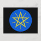Emblema de Etiopía. El Emblema Nacional de Etiopía ha estado en su forma actual desde 1996. Contiene un pentagrama dorado que irradia rayos de luz sobre un escudo azul. Hoy el pentagrama representa la unidad del pueblo y la nacionalidad de Etiopía. El emblema también aparece en el centro de la bandera de Etiopía.