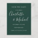 Featuring signature style names, this elegant emerald green save the date card can be personalised with your special event information in chic white lettering. Designed by Thisisnotme©