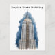 Ascender a las alturas de la ciudad de Nueva York con esta impresionante tarjeta postal del Empire State Building. Esta cautivadora ilustración de acuarela presenta el magnífico Empire State Building, un símbolo perdurable de la ciudad de Nueva York y uno de los rascacielos más reconocibles del mundo. El estilo artístico captura hermosamente la grandeza y los detalles intrincados de este emblemático lugar emblemático de NYC, presentado contra un llamativo fondo de acuarela azul.