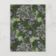 Una bonita postal de arte con el diseño floral Seaweed, creada por John Henry Dearle en 1901 para Morris & Co., muestra una versión digitalmente realzada del papel pintado original, coloreada en tonos lavanda. Muestra un patrón giratorio de follaje verde entrelazado con flores moradas.