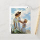Postal de arte fino con la pintura de Charles Courtney Curran (1861-1942), On the Cliff (1910). Era un pintor impresionista estadounidense. Dos mujeres y un joven chica, todos vestidos de blanco, se paran en un acantilado en un hermoso día, rodeados por un brillante cielo azul adornado con esponjosas nubes blancas.