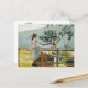 Una postal artística de calidad con la acuarela On the Stile (1878), del artista estadounidense Winslow Homer (1836-1910). Un paisaje rural en una granja con un niño ayudando a un chica sobre una valla en el campo de trigo.