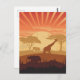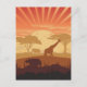 Arte vector original de un safari con elefantes, jirafas y rinocerontes.