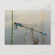 Postal En espera, macro de la mosca azul de Damselfly