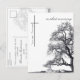 Esta tarjeta conmemorativa tiene un diseño oscuro moderno y elegante con un borde blanco alrededor de la parte delantera y trasera. En silencio luto - árbol en un prado.