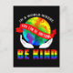 Un color de arcoiris Tierra en un par de manos con una cita que dice en un mundo donde puedes ser cualquier cosa amable