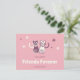 Esta postal celebra la alegría de la amistad de toda la vida con un encantador diseño que presenta dos adorables gatos, uno al lado del otro, simbolizando el inquebrantable vínculo entre amigos. El alegre fondo rosado, junto con el dulce mensaje "Amigos para siempre", hace de esta postal un placer para cualquier amistad. El espacio adicional para un mensaje personalizable en la parte posterior le permite añadir una nota sentida, haciéndolo aún más especial para su mejor amigo.