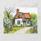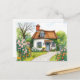 Postal Encantadora Cabaña Acuarela Flores en Flor