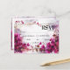 La tarjeta de boda RSVP, de estilo postal, forma parte integrante de la "Fuchsia Encantment: Watercolor Boda Suite", cuenta con un pintoresco frente adornado con el cautivador telón de fondo de flores de fucsia y barrendero de hiedra. En la parte superior, un pie de foto dice: "Por favor responda", seguido de la fecha para responder. A continuación, se presentan opciones para que los huéspedes indiquen su respuesta: "Acepta con placer", "Declora con pesar". Además, hay tres opciones de carne, entre ellas una selección vegetariana. Los clientes disponen de un amplio espacio para insertar sus nombres y especificar su preferencia por las comidas, lo que garantiza que la pareja pueda adaptarse a las preferencias y restricciones de la dieta. En la parte posterior, un fondo blanco limpio y fresco hace las veces de lienzo. Este lado funciona como una postal, con un espacio designado para que el receptor de la tarjeta la predirija. La sencillez de este diseño no sólo capta la esencia de la celebración, sino que también proporciona practicidad para el receptor de la tarjeta. La tarjeta RSVP al estilo postal "Fuchsia Enchantment: Watercolor Boda Suite" garantiza una combinación armoniosa de atractivo visual y comodidad funcional.